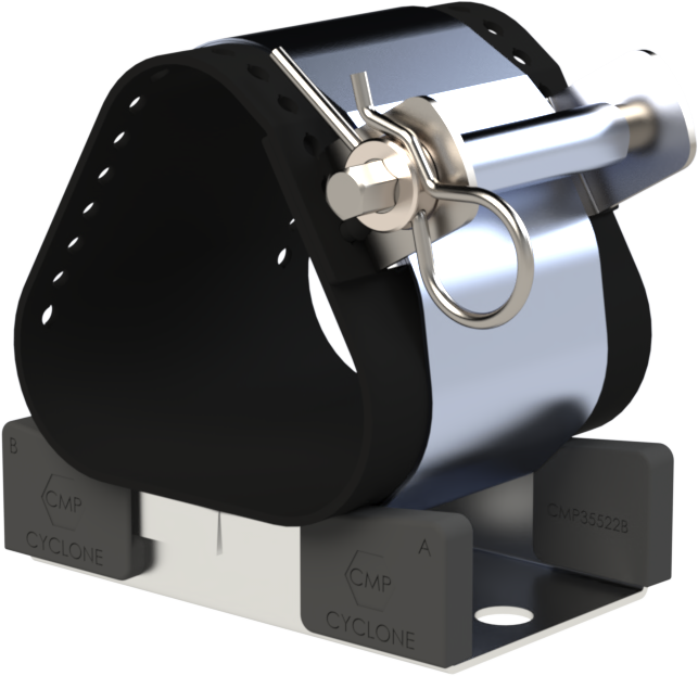 The CMP Cyclone II is a single/parallel/trefoil composite cable cleat, designed and tested in accordance with IEC 61914. Manufactured from 316L Stainless Steel base and Strap with Low Smoke & Fume, Zero Halogen (LSF0H), Phosphorus free polymeric liners to protect the cable sheath. The cable cleat design caters for a wide range of miscellaneous cable shapes and formations. The Cyclone product has an exceptional overlapping cable acceptance range and provides the end user more flexibility in comparison to more rigid cable cleats on the market. Each cleat is capable of securing various cable formations, such as single cable (multicore), single cable in parallel formation or three cables in trefoil formation. The two M10 and one M12 fixing clearance holes in the base allows versatility of fixing the cleat to the mounting structure.