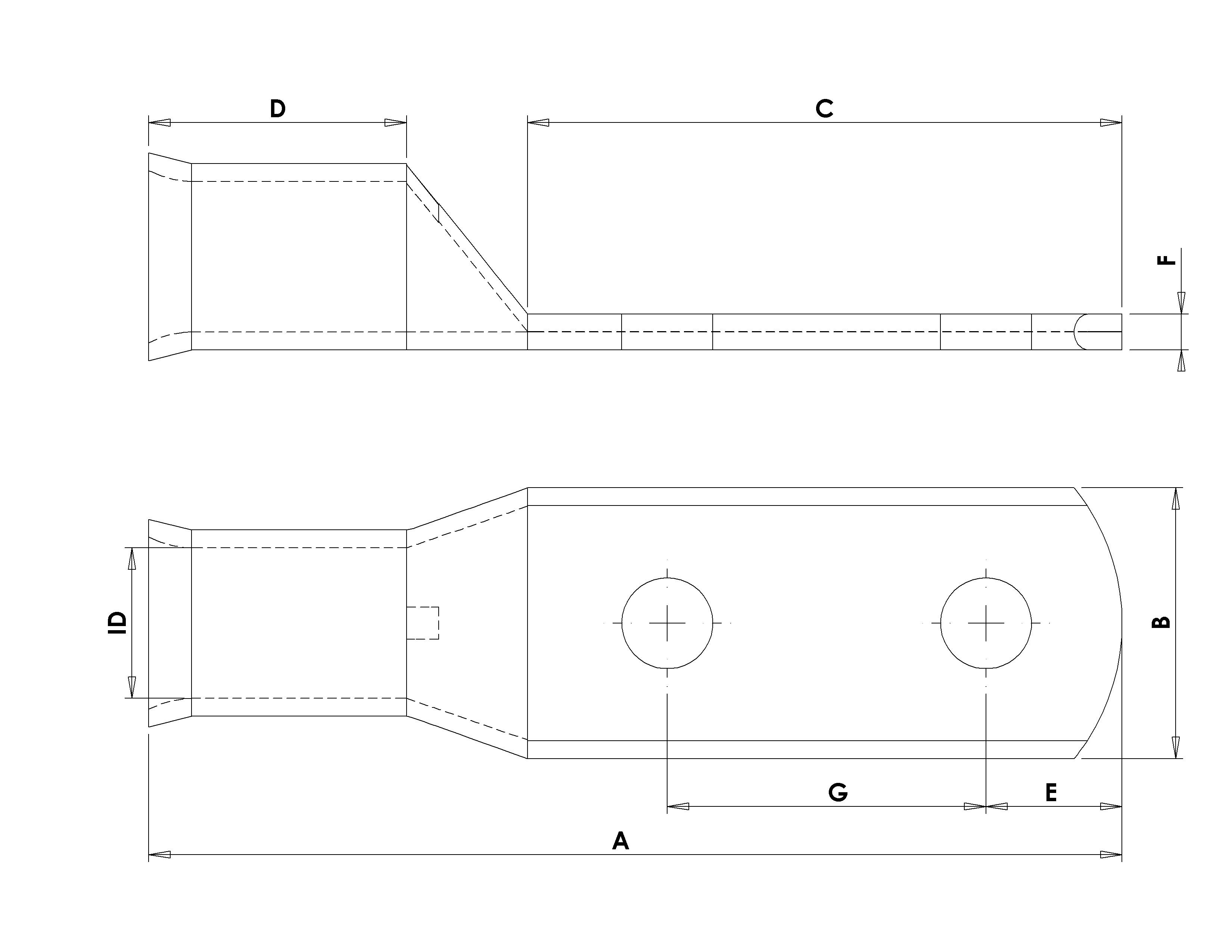 These flared entry products have been designed and third party certified to IEC 61238-1 Class B, for high quality and reliable crimping. Manufactured from high purity, oxygen-free, seamless copper tube (C110/CW009A), these cable lugs are precisely dimensioned to achieve optimal crimping with suitable conductors. The lugs are annealed to enhance durability, minimising risk of fracture between the palm and barrel. The tin coating ensures corrosion and oxidation resistance, ensuring maximum efficiency of the connection. There is an inspection window to visually inspect conductor insertion; the inspection window can be removed as an option by adding suffix "X" - Example: 300CSDF212X. The centres of the two stud holes are detailed in the dimensional table. Custom stud hole dimensions are available on request. Blank palms available on request; please contact CMP for more information.