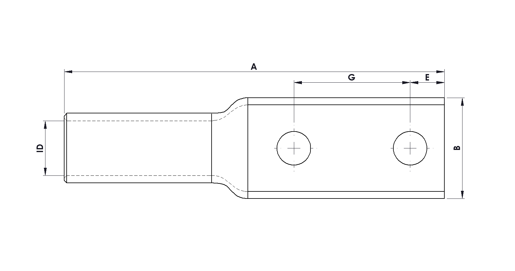 These products have been designed and third party certified to UL 486A-486B, for high quality and reliable crimping. Long barrel compression cable lugs enable additional crimps, offering increased electrical and mechanical properties. Manufactured from high purity, oxygen-free, seamless copper tube (C110/CW009A), these cable lugs are precisely dimensioned to achieve optimal crimping with suitable conductors. The lugs are annealed to enhance durability, minimising risk of fracture between the palm and barrel. The tin coating ensures corrosion and oxidation resistance, ensuring maximum efficiency of the connection. There is a large inspection window to visually inspect conductor insertion; the inspection window can be removed as an option - see data sheet CLP2. The centres of the two stud holes are detailed in the dimensional table. Custom stud hole dimensions are available on request.