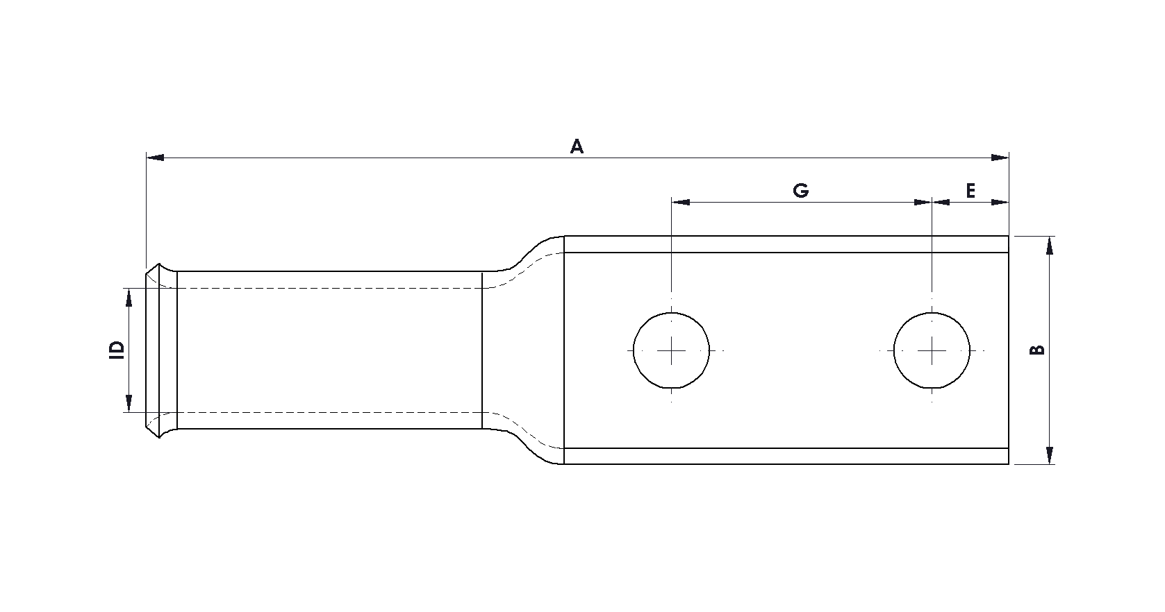 These flared entry products have been designed and third party certified to UL 486A-486B, for high quality and reliable crimping. Long barrel compression cable lugs enable additional crimps, offering increased electrical and mechanical properties. Manufactured from high purity, oxygen-free, seamless copper tube (C110/CW009A), these cable lugs are precisely dimensioned to achieve optimal crimping with suitable conductors. The lugs are annealed to enhance durability, minimising risk of fracture between the palm and barrel. The tin coating ensures corrosion and oxidation resistance, ensuring maximum efficiency of the connection. There is a large inspection window to visually inspect conductor insertion; the inspection window can be removed as an option - see data sheet CLF2. The centres of the two stud holes are detailed in the dimensional table. Custom stud hole dimensions are available on request.