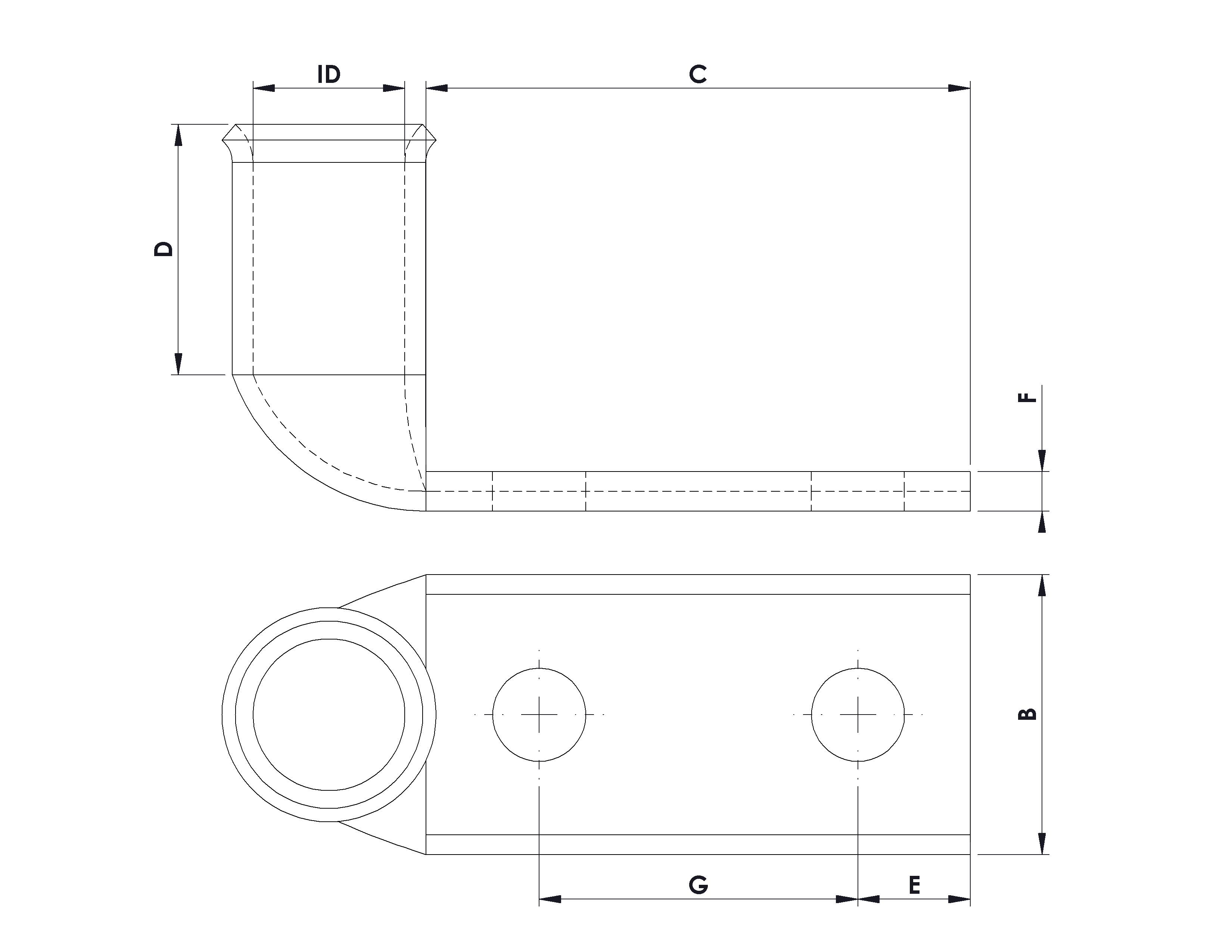 These flared entry products have been designed and third party certified to UL 486A-486B and CSA C22.2 No. 65, for high quality and reliable crimping. Angled palm to ensure connection can be made with minimal bending of cables. Manufactured from high purity, oxygen-free, seamless copper tube (C110/CW009A), these cable lugs are precisely dimensioned to achieve optimal crimping with suitable conductors. The lugs are annealed to enhance durability, minimising risk of fracture between the palm and barrel. The tin coating ensures corrosion and oxidation resistance, ensuring maximum efficiency of the connection. The centres of the two stud holes are detailed in the dimensional table. Custom stud hole dimensions are available on request.