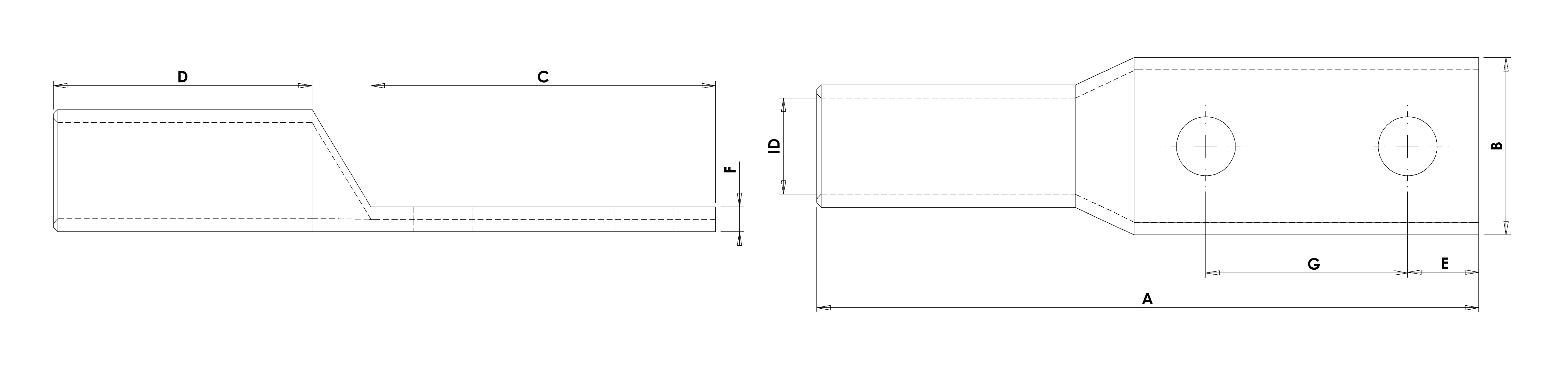CMP Heavy Duty Imperial Copper Compression Lug - Parallel Entry Long Barrel with 2 Stud Holes. These products have been designed and certified to UL 486A for high quality and reliable crimping. Long barrel compression lugs increase the electrical and mechanical properties. Manufactured from high purity copper tube (C110/CW009A), the product dimensions have been selected for the most optimal compression with corresponding conductors. These copper compression lugs are annealed to ensure longevity during operation, reducing risk of fracture between palm and barrel. The tin coating ensures corrosion and oxidation resistance for optimal efficiency of the connection. There is a standard large inspection window to visually inspect conductor insertion; the inspection hole can be removed as an option - contact CMP for more information. The centres of the two stud holes are detailed in the dimensional table. Custom stud hole dimensions are available on request.