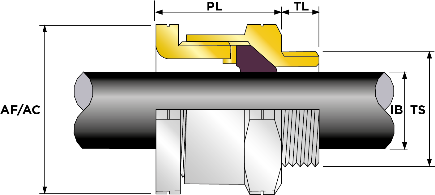 | Part Number | Size | Material | Entry Thread | Entry Thread Size TS | Entry Thread Pitch TP | Min Overall Cable Ø OS (mm) | Max Overall Cable Ø OS (mm) | Min Overall Cable Ø OS (Imp) | Max Overall Cable Ø OS (Imp) | Min Thread Length TL (mm) | Min Thread Length TL (Imp) | Max Across Flats AF (mm) | Max Across Corners AC (mm) | Max Across Flats AF (Imp) | Max Across Corners AC (Imp) | Max Protrusion Length PL (mm) | Shroud Size | Ass'y Weight | |