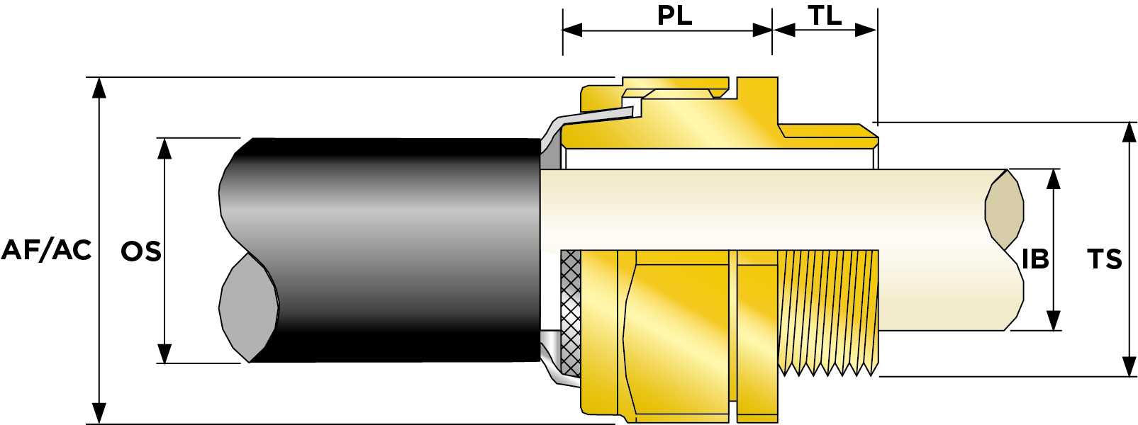 | Part Number | Size | Material | Entry Thread | Entry Thread Size TS | Entry Thread Pitch TP | Min Overall Cable Ø OS (mm) | Max Overall Cable Ø OS (mm) | Min Overall Cable Ø OS (Imp) | Max Overall Cable Ø OS (Imp) | Min Thread Length TL (mm) | Min Thread Length TL (Imp) | Max Across Flats AF (mm) | Max Across Corners AC (mm) | Max Across Flats AF (Imp) | Max Across Corners AC (Imp) | Max Protrusion Length PL (mm) | Max Cable Bedding Ø IB (mm) | Max Cable Bedding Ø IB (Imp) | Min Cable Bedding Ø IB (Imp) | Min Armour Thickness W Cone W1 (mm) | Max Armour Thickness W Cone W1 (mm) | Min Armour Thickness W Cone W1 (Imp) | Max Armour Thickness W Cone W1 (Imp) | Shroud Size | Ass'y Weight | |