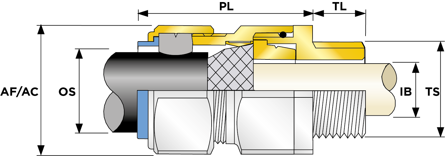 | Part Number | Size | Material | Entry Thread | Entry Thread Size TS | Entry Thread Pitch TP | Min Overall Cable Ø OS (mm) | Max Overall Cable Ø OS (mm) | Min Overall Cable Ø OS (Imp) | Max Overall Cable Ø OS (Imp) | Min Thread Length TL (mm) | Min Thread Length TL (Imp) | Max Across Flats AF (mm) | Max Across Corners AC (mm) | Max Across Flats AF (Imp) | Max Across Corners AC (Imp) | Max Protrusion Length PL (mm) | Max Cable Bedding Ø IB (mm) | Max Cable Bedding Ø IB (Imp) | Min Cable Bedding Ø IB (Imp) | Min Armour Thickness X Cone X1 (mm) | Max Armour Thickness X Cone X1 (mm) | Min Armour Thickness X Cone X1 (Imp) | Min Armour Thickness W Cone W1 (mm) | Max Armour Thickness W Cone W1 (mm) | Min Armour Thickness W Cone W1 (Imp) | Max Armour Thickness W Cone W1 (Imp) | Shroud Size | Ass'y Weight | |