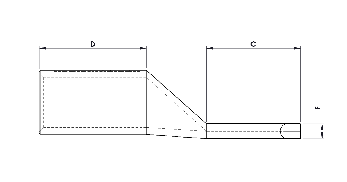 | Part Number | Cable Size (mm²) | Hole Stud Size | Die Index No. | Internal Diameter (ID) | Overall Length (A) | Palm Width (B) | Palm Length (C) | Barrel Length (D) | Stud Hole Distance (E) | Palm Thickness (F) | Pack Qty | |
