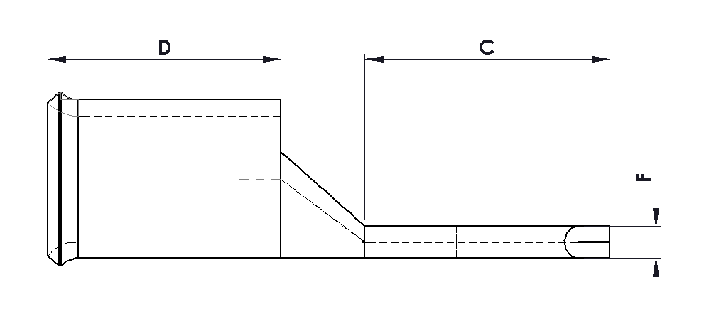 These flared entry products have been designed and third party certified to IEC 61238-1 Class A, for high quality and reliable crimping. Manufactured from high purity, oxygen-free, seamless copper tube (C110/CW009A), these cable lugs are precisely dimensioned to achieve optimal crimping with suitable conductors. The lugs are annealed to enhance durability, minimising risk of fracture between the palm and barrel. The tin coating ensures corrosion and oxidation resistance, ensuring maximum efficiency of the connection. There is a large inspection window to visually inspect conductor insertion; the inspection window can be removed as an option by adding suffix "X" - Example: 300CHDF112X. Standard stud hole sizes are detailed in the dimension table. Custom stud hole dimensions are available on request. Blank palms available on request; please contact CMP for more information.