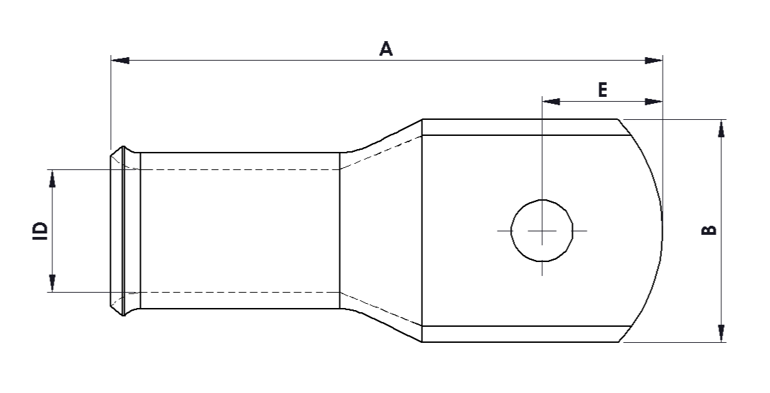 Heavy Duty Metric Copper Compression Cable Lug - Flared Entry Standard Barrel with 1 Stud Hole - Inspection Window