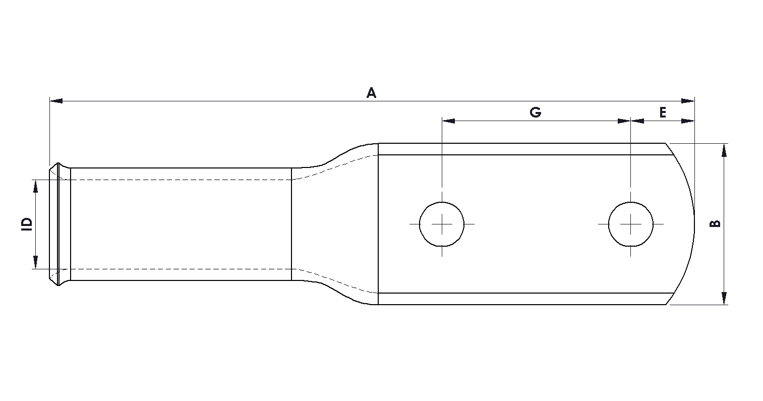 These flared entry products have been designed and third party certified to IEC 61238-1 Class A, for high quality and reliable crimping. Long barrel compression cable lugs enable additional crimps, offering increased electrical and mechanical properties. Manufactured from high purity, oxygen-free, seamless copper tube (C110/CW009A), these cable lugs are precisely dimensioned to achieve optimal crimping with suitable conductors. The lugs are annealed to enhance durability, minimising risk of fracture between the palm and barrel. The tin coating ensures corrosion and oxidation resistance, ensuring maximum efficiency of the connection. There is a large inspection window to visually inspect conductor insertion; the inspection window can be removed as an option - see data sheet CHLF2. The centres of the two stud holes are detailed in the dimensional table. Custom stud hole dimensions are available on request.