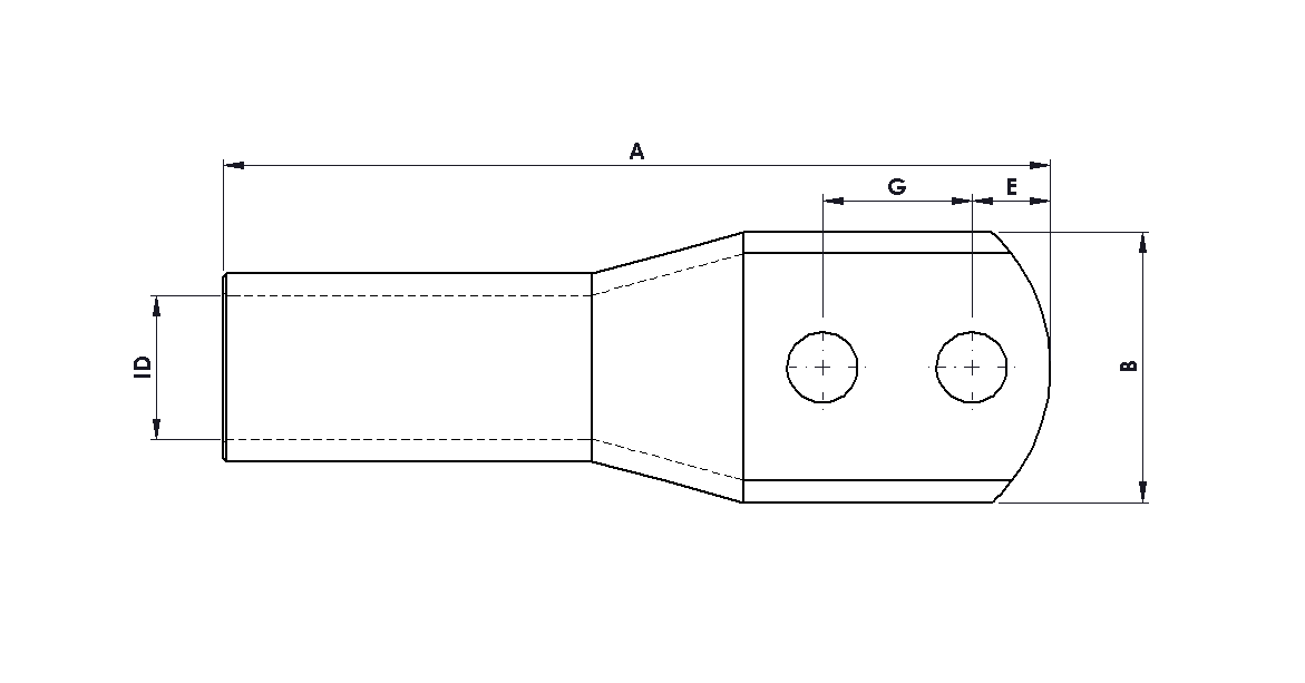These products have been designed and third party certified to IEC 61238-1 Class A, for high quality and reliable crimping. Long barrel compression cable lugs enable additional crimps, offering increased electrical and mechanical properties. Manufactured from high purity, oxygen-free, seamless copper tube (C110/CW009A), these cable lugs are precisely dimensioned to achieve optimal crimping with suitable conductors. The lugs are annealed to enhance durability, minimising risk of fracture between the palm and barrel. The tin coating ensures corrosion and oxidation resistance, ensuring maximum efficiency of the connection. No inspection window to prevent moisture ingress for MV and outdoor applications. The centres of the two stud holes are detailed in the dimensional table. Custom stud hole dimensions are available on request.