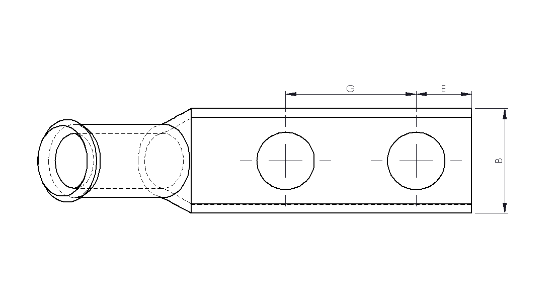 These flared entry products have been designed and third party certified to UL 486A-486B and CSA C22.2 No. 65, for high quality and reliable crimping. Angled palm to ensure connection can be made with minimal bending of cables. Manufactured from high purity, oxygen-free, seamless copper tube (C110/CW009A), these cable lugs are precisely dimensioned to achieve optimal crimping with suitable conductors. The lugs are annealed to enhance durability, minimising risk of fracture between the palm and barrel. The tin coating ensures corrosion and oxidation resistance, ensuring maximum efficiency of the connection. The centres of the two stud holes are detailed in the dimensional table. Custom stud hole dimensions are available on request.