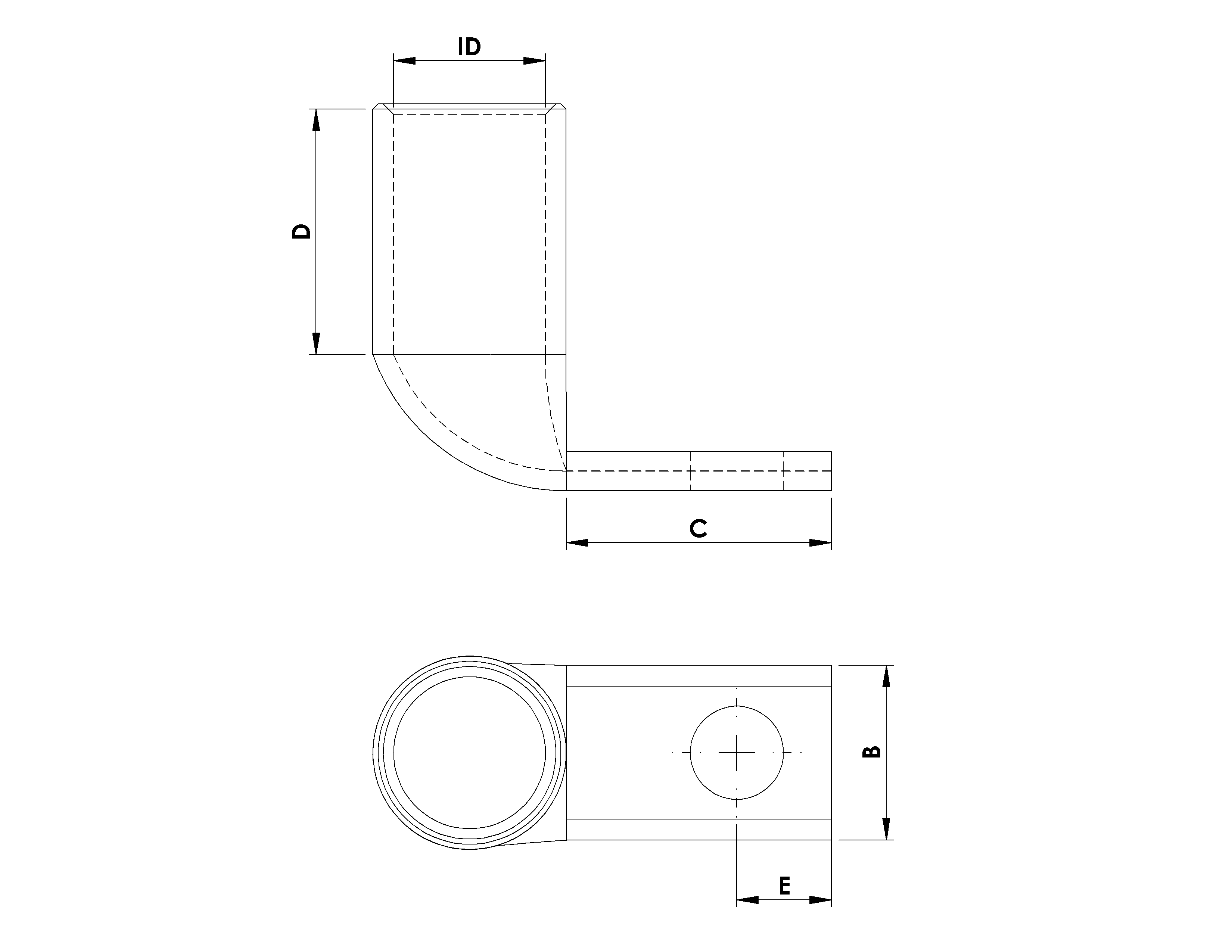 These products have been designed and third party certified to UL 486A-486B, for high quality and reliable crimping. Narrow palm cable lugs have a contained palm width to ensure a connection can be made in space constrained installations. Angled palm to ensure connection can be made with minimal bending of cables. Manufactured from high purity, oxygen-free, seamless copper tube (C110/CW009A), these cable lugs are precisely dimensioned to achieve optimal crimping with suitable conductors. The lugs are annealed to enhance durability, minimising risk of fracture between the palm and barrel. The tin coating ensures corrosion and oxidation resistance, ensuring maximum efficiency of the connection. Standard stud hole sizes are detailed in the dimension table. Custom stud hole dimensions are available on request.