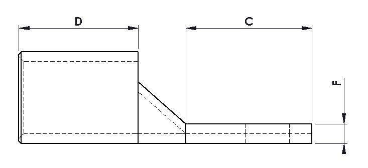 | Part Number | Cable Size (AWG/MCM/kcmil) | Flex Cable Size (AWG/MCM/kcmil) | Hole Stud Size | Die Index No. | Internal Diameter (ID) | Internal Diameter (ID) - Inches | Overall Length (A) | Overall Length (A) - Inches | Palm Width (B) | Palm Width (B) - Inches | Palm Length (C) | Palm Length (C) - Inches | Barrel Length (D) | Barrel Length (D) - Inches | Stud Hole Distance (E) | Palm Thickness (F) | Palm Thickness (F) - Inches | Stud Hole Distance (E) - Inches | Pack Qty | |
