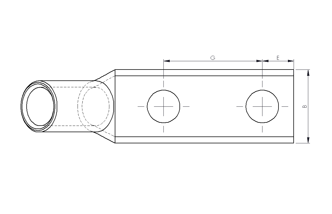 These products have been designed and third party certified to UL 486A-486B and CSA C22.2 No. 65, for high quality and reliable crimping. Angled palm to ensure connection can be made with minimal bending of cables. Manufactured from high purity, oxygen-free, seamless copper tube (C110/CW009A), these cable lugs are precisely dimensioned to achieve optimal crimping with suitable conductors. The lugs are annealed to enhance durability, minimising risk of fracture between the palm and barrel. The tin coating ensures corrosion and oxidation resistance, ensuring maximum efficiency of the connection. The centres of the two stud holes are detailed in the dimensional table. Custom stud hole dimensions are available on request.
