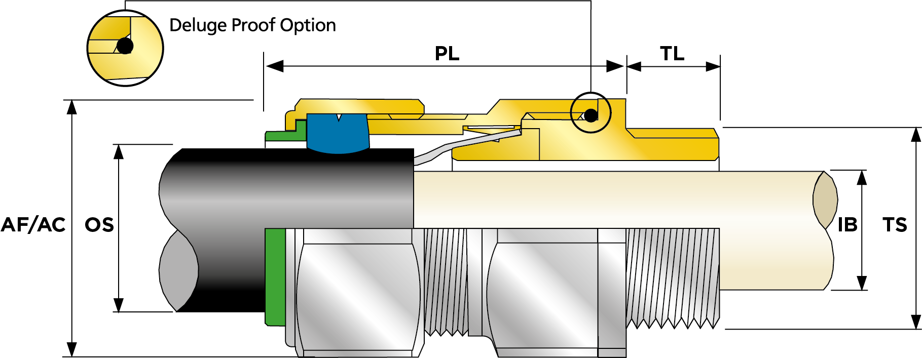 | Part Number | Size | Material | Entry Thread | Entry Thread Size TS | Entry Thread Pitch TP | Min Overall Cable Ø OS (mm) | Max Overall Cable Ø OS (mm) | Min Overall Cable Ø OS (Imp) | Max Overall Cable Ø OS (Imp) | Min Thread Length TL (mm) | Min Thread Length TL (Imp) | Max Across Flats AF (mm) | Max Across Corners AC (mm) | Max Across Flats AF (Imp) | Max Across Corners AC (Imp) | Max Protrusion Length PL (mm) | Max Cable Bedding Ø IB (mm) | Max Cable Bedding Ø IB (Imp) | Min Cable Bedding Ø IB (Imp) | Min Armour Thickness W Cone W1 (mm) | Max Armour Thickness W Cone W1 (mm) | Min Armour Thickness W Cone W1 (Imp) | Max Armour Thickness W Cone W1 (Imp) | Shroud Size | Ass'y Weight | |