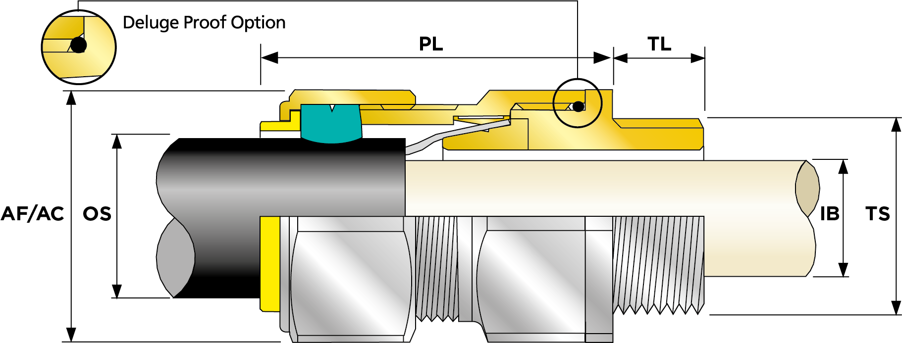 | Part Number | Size | Material | Entry Thread | Entry Thread Size TS | Entry Thread Pitch TP | Min Overall Cable Ø OS (mm) | Max Overall Cable Ø OS (mm) | Min Overall Cable Ø OS (Imp) | Max Overall Cable Ø OS (Imp) | Min Thread Length TL (mm) | Min Thread Length TL (Imp) | Max Across Flats AF (mm) | Max Across Corners AC (mm) | Max Across Flats AF (Imp) | Max Across Corners AC (Imp) | Max Protrusion Length PL (mm) | Max Cable Bedding Ø IB (mm) | Max Cable Bedding Ø IB (Imp) | Min Cable Bedding Ø IB (Imp) | Min Armour Thickness W Cone W1 (mm) | Max Armour Thickness W Cone W1 (mm) | Min Armour Thickness W Cone W1 (Imp) | Max Armour Thickness W Cone W1 (Imp) | Shroud Size | Ass'y Weight | |