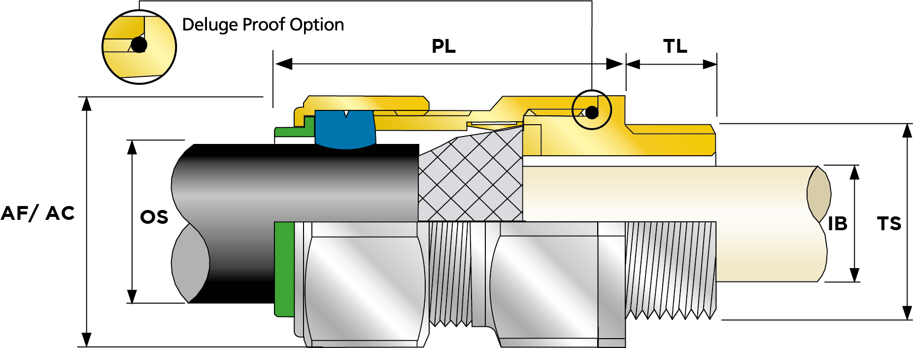 | Part Number | Size | Material | Entry Thread | Entry Thread Size TS | Entry Thread Pitch TP | Min Overall Cable Ø OS (mm) | Max Overall Cable Ø OS (mm) | Min Overall Cable Ø OS (Imp) | Max Overall Cable Ø OS (Imp) | Min Thread Length TL (mm) | Min Thread Length TL (Imp) | Max Across Flats AF (mm) | Max Across Corners AC (mm) | Max Across Flats AF (Imp) | Max Across Corners AC (Imp) | Max Protrusion Length PL (mm) | Max Cable Bedding Ø IB (mm) | Max Cable Bedding Ø IB (Imp) | Min Cable Bedding Ø IB (Imp) | Min Armour Thickness X Cone X1 (mm) | Max Armour Thickness X Cone X1 (mm) | Min Armour Thickness X Cone X1 (Imp) | Shroud Size | Ass'y Weight | |