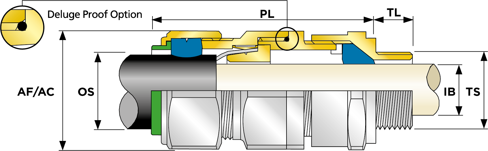 | Part Number | Size | Material | Entry Thread | Entry Thread Size TS | Entry Thread Pitch TP | Min Overall Cable Ø OS (mm) | Max Overall Cable Ø OS (mm) | Min Overall Cable Ø OS (Imp) | Max Overall Cable Ø OS (Imp) | Min Thread Length TL (mm) | Min Thread Length TL (Imp) | Max Across Flats AF (mm) | Max Across Corners AC (mm) | Max Across Flats AF (Imp) | Max Across Corners AC (Imp) | Max Protrusion Length PL (mm) | Min Cable Bedding Ø IB (mm) | Max Cable Bedding Ø IB (mm) | Max Cable Bedding Ø IB (Imp) | Min Cable Bedding Ø IB (Imp) | Min Armour Thickness W Cone W1 (mm) | Max Armour Thickness W Cone W1 (mm) | Min Armour Thickness W Cone W1 (Imp) | Max Armour Thickness W Cone W1 (Imp) | Shroud Size | Ass'y Weight | |