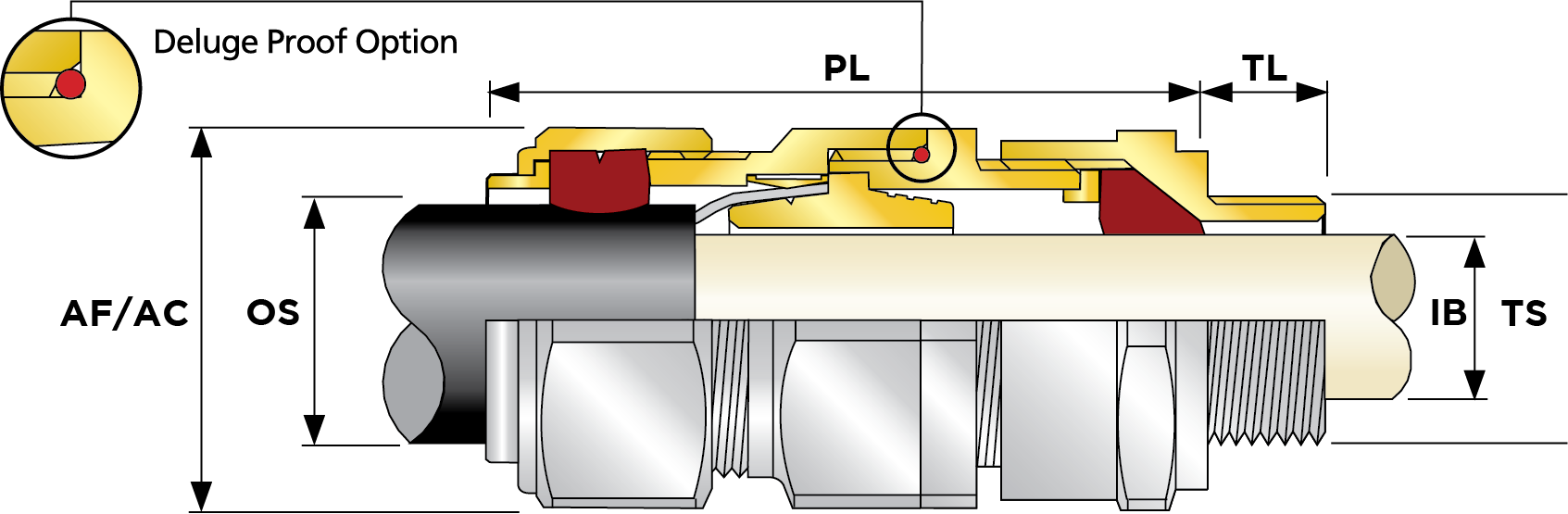 | Part Number | Size | Material | Entry Thread | Entry Thread Size TS | Entry Thread Pitch TP | Min Overall Cable Ø OS (mm) | Max Overall Cable Ø OS (mm) | Min Overall Cable Ø OS (Imp) | Max Overall Cable Ø OS (Imp) | Min Thread Length TL (mm) | Min Thread Length TL (Imp) | Max Across Flats AF (mm) | Max Across Corners AC (mm) | Max Across Flats AF (Imp) | Max Across Corners AC (Imp) | Max Protrusion Length PL (mm) | Min Cable Bedding Ø IB (mm) | Max Cable Bedding Ø IB (mm) | Max Cable Bedding Ø IB (Imp) | Min Cable Bedding Ø IB (Imp) | Min Armour Thickness X Cone X1 (mm) | Max Armour Thickness X Cone X1 (mm) | Min Armour Thickness X Cone X1 (Imp) | Min Armour Thickness W Cone W1 (mm) | Max Armour Thickness W Cone W1 (mm) | Min Armour Thickness W Cone W1 (Imp) | Max Armour Thickness W Cone W1 (Imp) | Shroud Size | Ass'y Weight | |