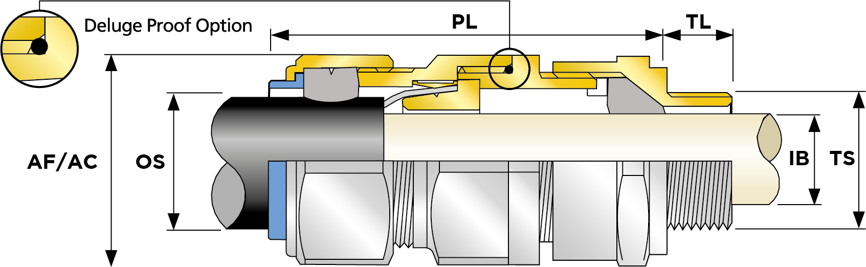 - Dedicated captive cone for wire armour, with ‘AnyWay’ clamping ring