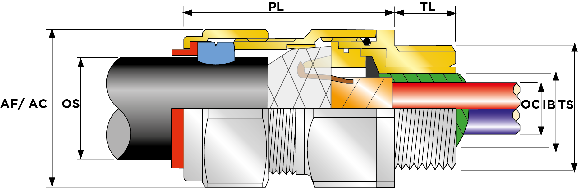 | Part Number | Size | Material | Entry Thread | Entry Thread Size TS | Entry Thread Pitch TP | Min Overall Cable Ø OS (mm) | Max Overall Cable Ø OS (mm) | Min Overall Cable Ø OS (Imp) | Max Overall Cable Ø OS (Imp) | Max Ø Over Conductors (mm) | Max Ø Over Conductors (Imp) | Max No. of Conductors NC | Min Thread Length TL (mm) | Min Thread Length TL (Imp) | Max Across Flats AF (mm) | Max Across Corners AC (mm) | Max Across Flats AF (Imp) | Max Across Corners AC (Imp) | Max Protrusion Length PL (mm) | Min VAR Tape Ø (mm) | Min VAR Tape Ø (Imp) | Max VAR Tape Ø (mm) | Max VAR Tape Ø (Imp) | Min Armour Thickness X Cone X1 (mm) | Max Armour Thickness X Cone X1 (mm) | Min Armour Thickness X Cone X1 (Imp) | Min Armour Thickness W Cone W1 (mm) | Max Armour Thickness W Cone W1 (mm) | Min Armour Thickness W Cone W1 (Imp) | Max Armour Thickness W Cone W1 (Imp) | Shroud Size | Ass'y Weight | |