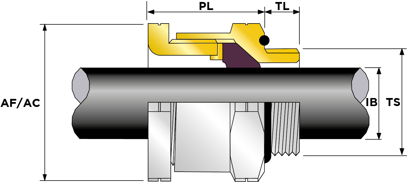 | Part Number | Size | Material | Entry Thread | Entry Thread Size TS | Entry Thread Pitch TP | Min Overall Cable Ø OS (mm) | Max Overall Cable Ø OS (mm) | Min Overall Cable Ø OS (Imp) | Max Overall Cable Ø OS (Imp) | Min Thread Length TL (mm) | Min Thread Length TL (Imp) | Max Across Flats AF (mm) | Max Across Corners AC (mm) | Max Across Flats AF (Imp) | Max Across Corners AC (Imp) | Max Protrusion Length PL (mm) | Shroud Size | Ass'y Weight | |