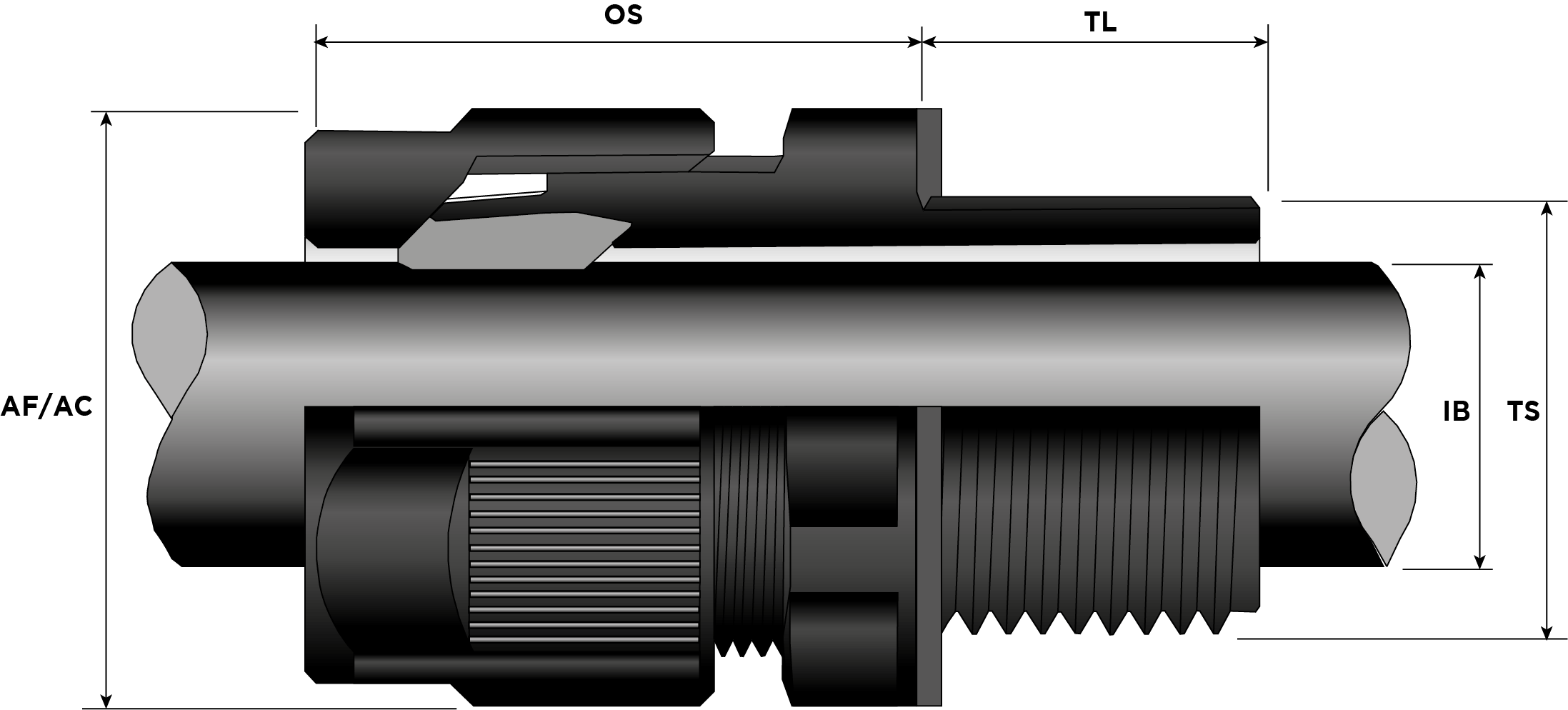 | Part Number | Size | Material | Entry Thread | Entry Thread Size TS | Entry Thread Pitch TP | Min Overall Cable Ø OS (mm) | Max Overall Cable Ø OS (mm) | Min Overall Cable Ø OS (Imp) | Max Overall Cable Ø OS (Imp) | Min Thread Length TL (mm) | Min Thread Length TL (Imp) | Max Across Flats AF (mm) | Max Across Corners AC (mm) | Max Across Flats AF (Imp) | Max Across Corners AC (Imp) | Max Protrusion Length PL (mm) | |